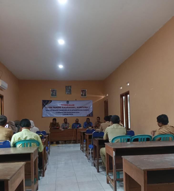 Candirejo (SIDA) Selasa, 28 Oktober 2025 Panitia Pengangkatan Pamong Kalurahan Candirejo melaksanakan pembekalan calon Kamituwa Kalurahan Candirejo. Dalam acara ini dihadiri oleh Kepala Jawatan Praja Semin, Kepala Jawatan Keamanan Semin, Lurah, Babinsa, Bhabinkamtibmas, Ketua BPKal dan Calon Kamituwa Kalurahan Candirejo. Dalam acara ini banyak disampaikan pesan dari beberapa narasumber yaitu :